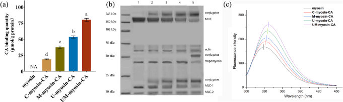 论文标题:Simultaneous ultrasound and microwave application in myosin-chlorogenic acid conjugation: Unlocking enhanced emulsion stability 研究团队:福建农林大学 研究亮点:首次将超声 - 微波协同技术应用于肌球蛋白 - 绿原酸共价接枝,借助能量互补实现 1+1>2 的协同效应,不仅将接枝反应时间从 12 小时大幅缩短至 30 分钟,还实现 80.26 μmol/g 肌球蛋白的最高接枝效率;该技术精准重塑肌球蛋白结构,全面优化其溶解度、表面疏水性等功能特性并有效抑制蛋白聚集,制备的共轭物乳化液兼具优异的物理稳定性与抗氧化性,能显著抑制 PUFA 氧化降解;同时所用技术绿色高效、反应条件温和且易工业化放大,也为天然蛋白功能化改性和新型高效食品乳化剂开发提供了全新思路与可行方案。